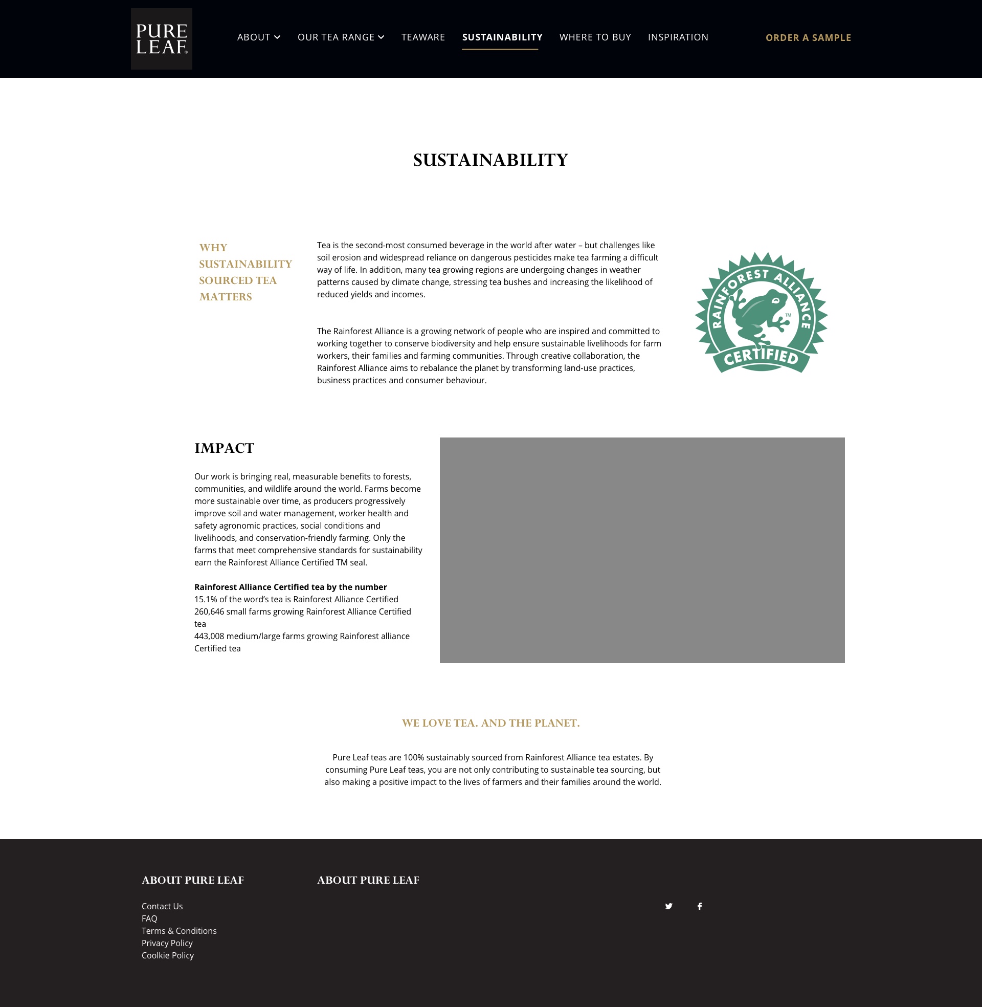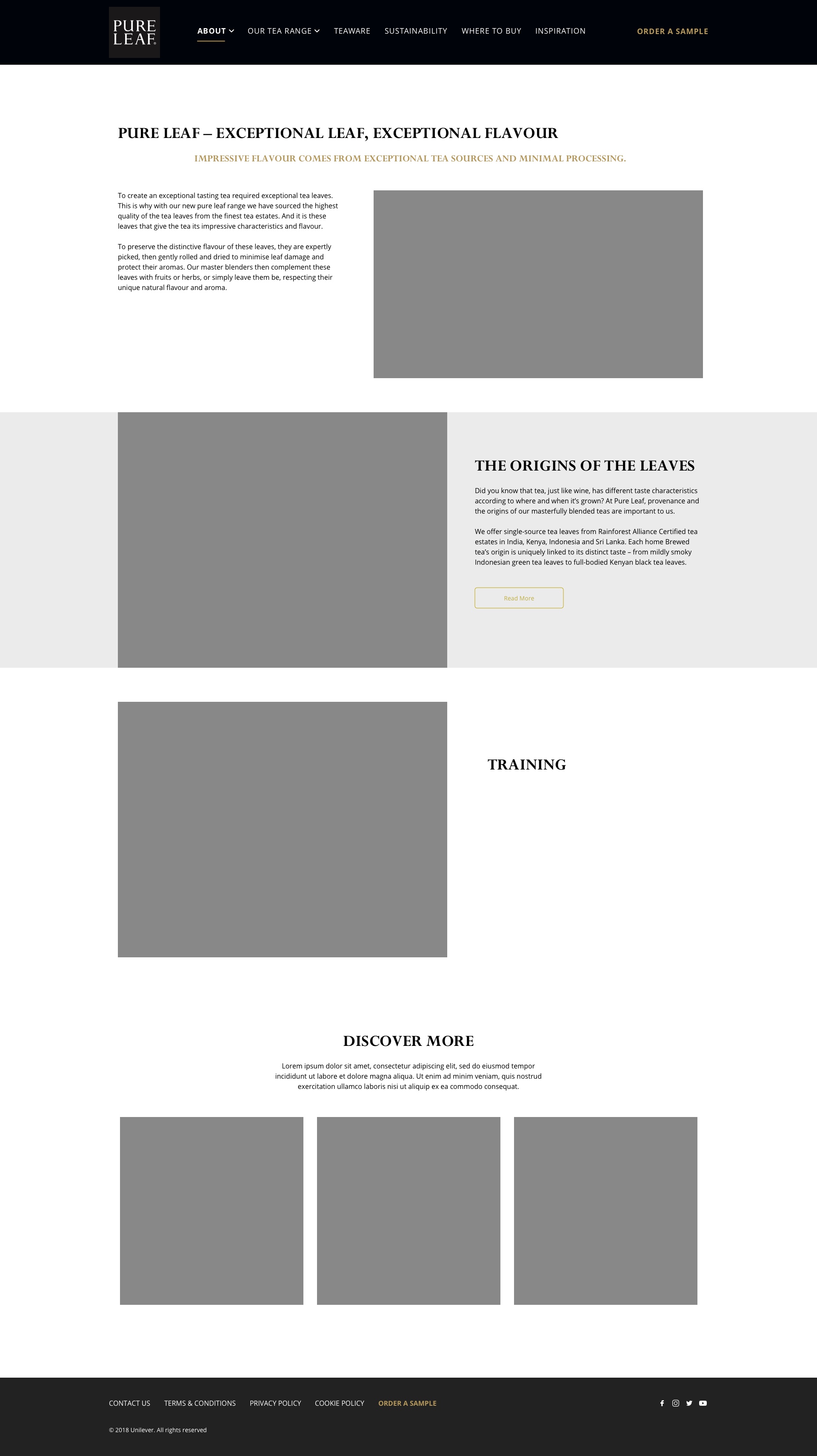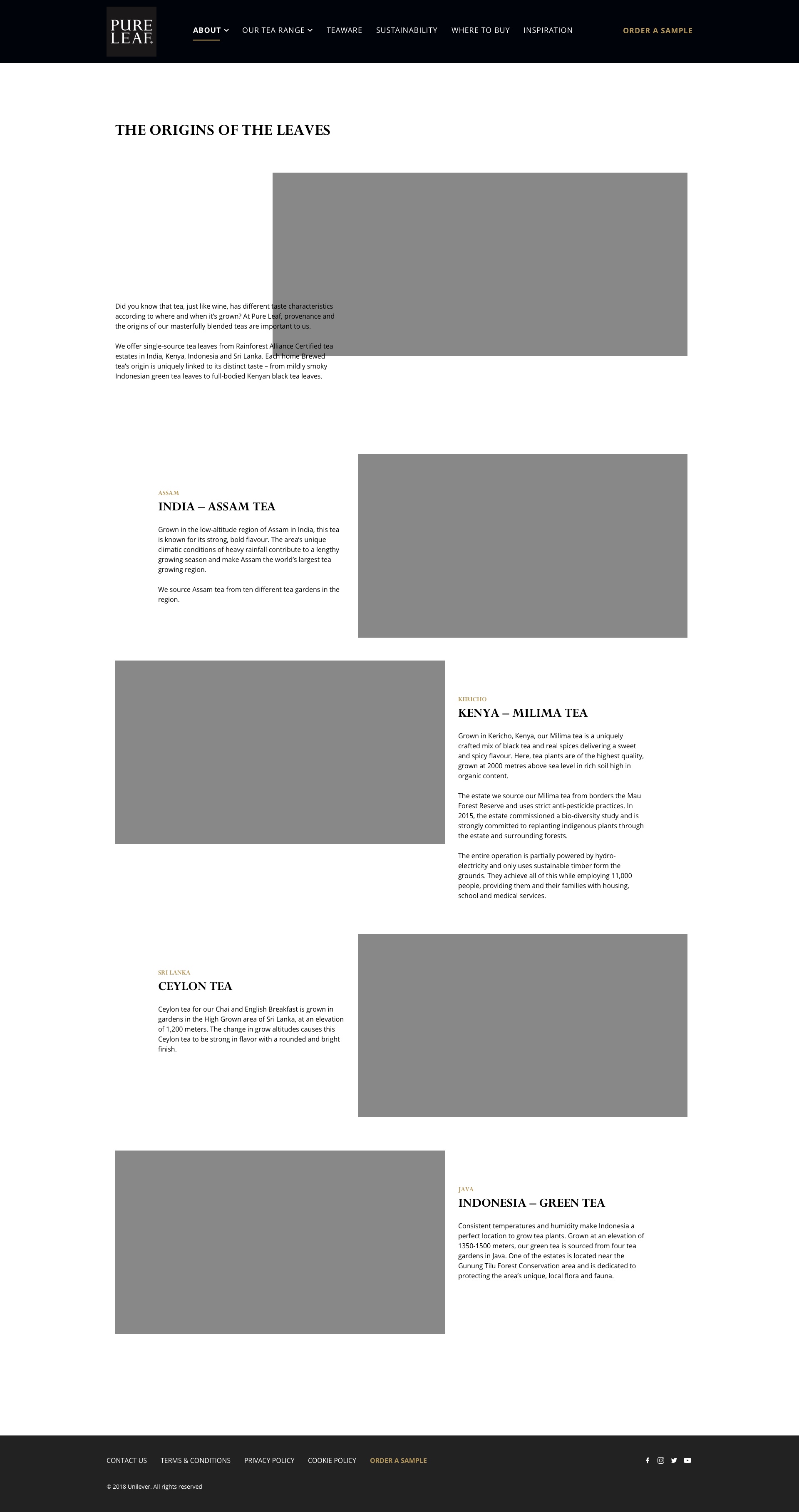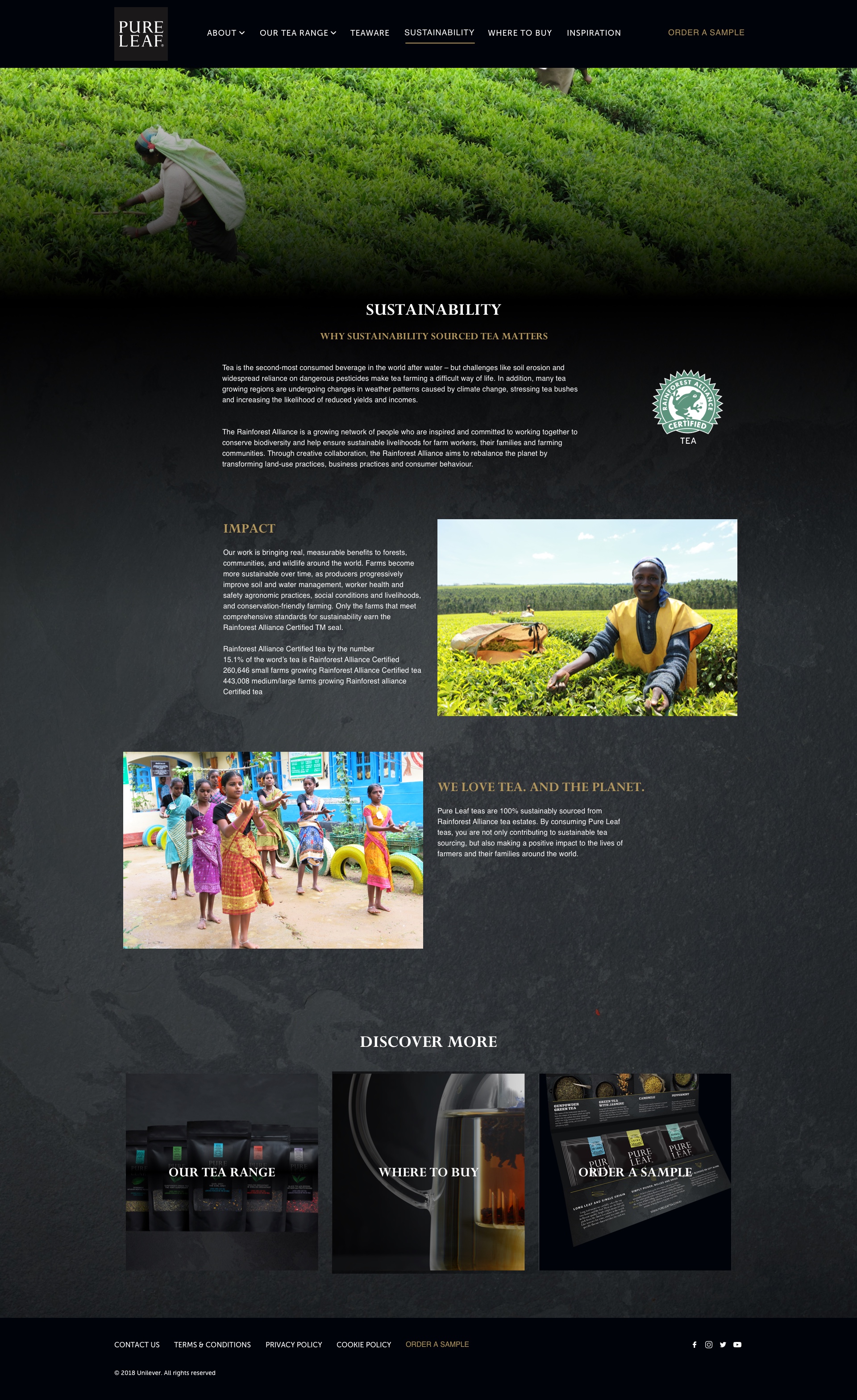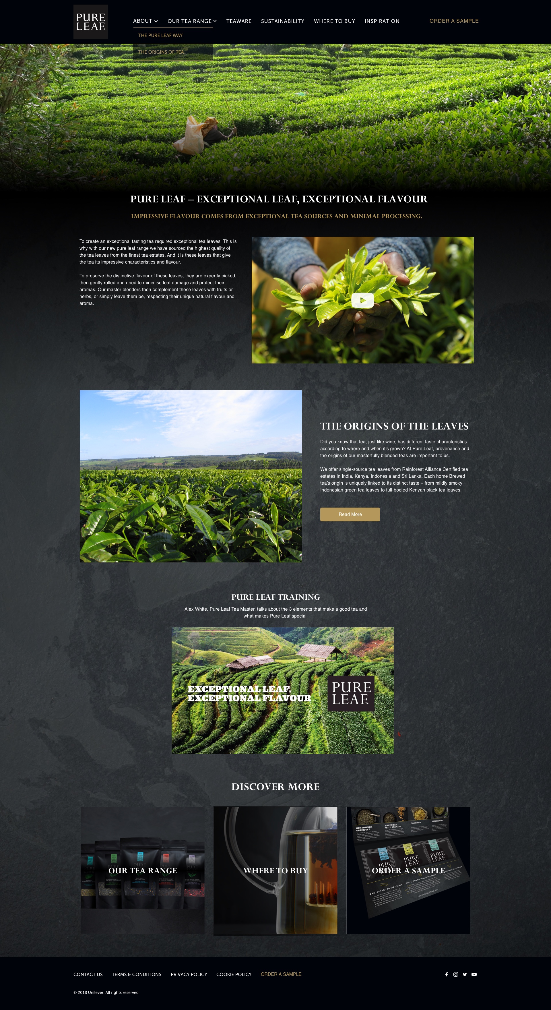 Pure Leaf is a new premium tea brand for UFS and this brand has been launched in Europe and North America with stand-alone websites. From the visual perspective, brand assets have been developed by the global team and are available for use, we need to adapt assets for local purpose.