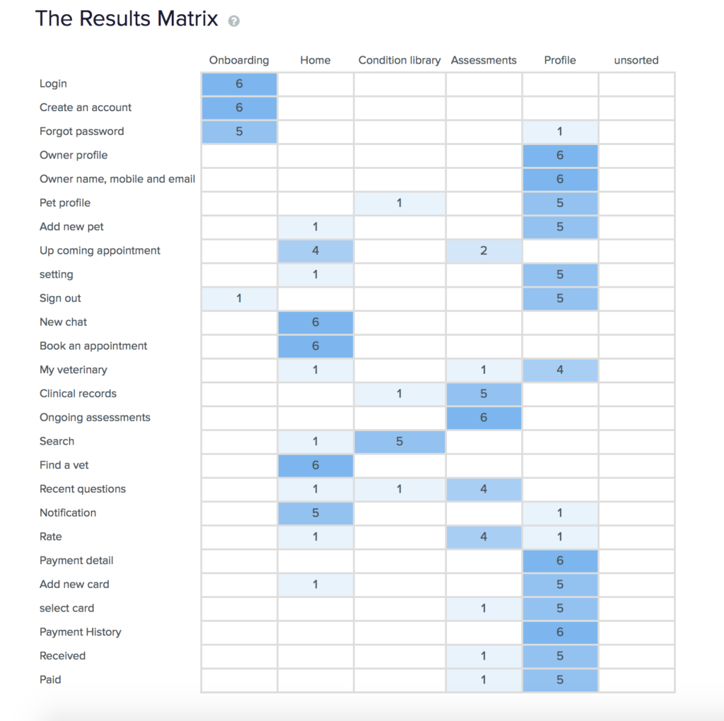 The card sorting technique has been used in order to determine the IA of mobile app. We used a online card sorting tool-Optimal sort, which allow us to get instant feed back and analysis.